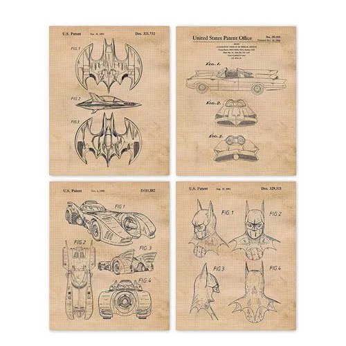 Add some vintage artwork into a loved one’s home with these Batman Patent Posters. This set of four vintage Batman wall art decors feature the captivating engineering and innovation of the iconic Bat car. It also covers the headgear and airplane patents artworks. Made of high-quality material, the artwork is printed in Fuji Crystal Archive paper producing high detail images and excellent quality paper stock.