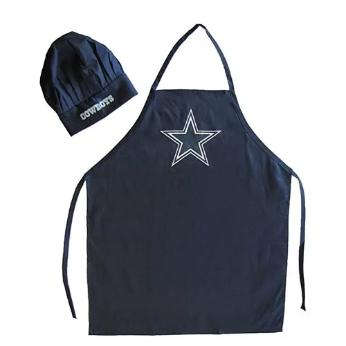 This NFL Chef Apron & Hat is perfect for the diehard football fan who loves to cook. Made of 80% polyester and 20% cotton, it’s lightweight and comfortable to wear. The apron is decorated with the Cowboy’s logo and colors, and the hat features the team’s logo on the front. Great for tailgating, barbeques, and team parties, the set is also entirely machine washable.