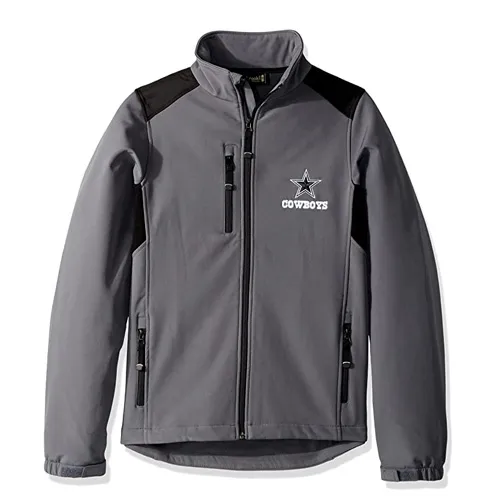 This Dunbrooke softshell jacket is a great-looking and popular piece that provides comfort and warmth from the elements. It is constructed of durable 4-way stretch, 2-way bonded polyester/spandex fabric with fleece under arms to help breathability. The jacket also features a vertical zippered chest pocket, zippered side pockets, and an embroidered Cowboys team logo on the left chest.