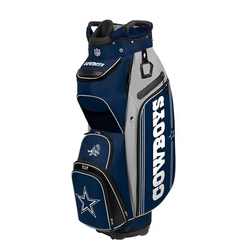 The bucket III cooler cart bag features the latest innovations and abundant storage for the modern golfer. The bucket insulated thermal-lined beverage pocket with an integrated drainage Port fulfills all their hydration needs. Velour lined valuables pockets feature waterproof bonded zippers. A dedicated range finder pocket keeps their range finder readily available while providing protection from scuffs, wear and the elements. The perfect gift idea for any golfer and NFL fan, they’re sure to love the Dallas Cowboy’s colors.