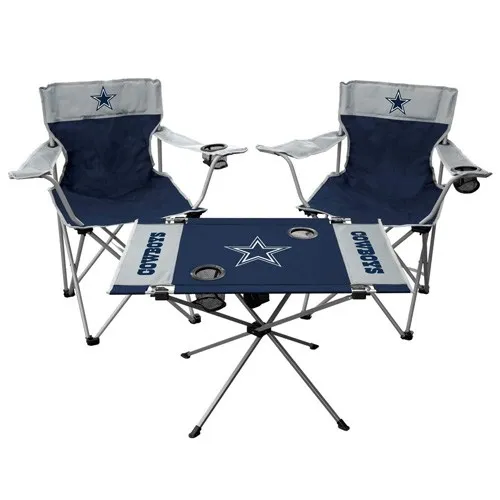 This Rawlings Dallas Cowboys 3 piece tailgate kit is great for any football fan. The kit includes two gameday elite chairs that are easy to transport with built in velcro strap or in branded carry bag. The compact, collapsible chairs also feature a built-in cup holder and will support up to 225 lbs. The portable folding endzone tailgate table is perfect for tailgating, concerts, and picnics while holding up to 75lbs of food and drinks