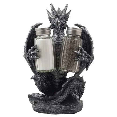 Keep their salt pepper shakers well-guarded with a fiery winged beast. Turn their guests green with envy, as an exquisitely hand-crafted granite-gray dragon fiercely guards two glass salt and pepper shakers. Standing 8 inches high, and individually crafted, it’s the perfect gift for your fantasy dragon loving friend!