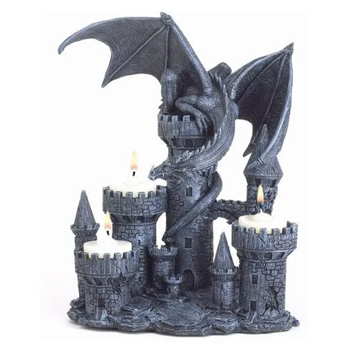 Anyone with a taste for the dramatic will appreciate the handiwork and premium quality resin used to handcraft this Fiery Dragon Castle Candle Holder Statue. Standing over 9.25” high, this work of art will look great in any room and is sure to grab anyone’s attention.