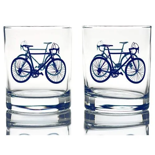 Help a cyclist make an impression with their friends by giving them these Bicycle Whiskey Glasses. Each purchase comes with two glasses, each with a capacity of 10 oz. and made of 100% lead-free, premium quality glassware. The design features a bicycle that comes in many vibrant colors, and the glasses come with matching ice rocks to keep any type of drink cold for longer.
