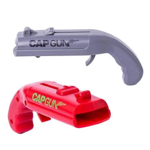 Help them practice their aim indoors with these hilarious cap gun launchers. Use the cap gun to remove the bottle caps and load them into the launcher to fire them! Spring-loaded and fully functional, these cap guns will bring endless fun of trying to shoot them into the trashcan. Sold in packs of two, these are perfect for duelling each other.