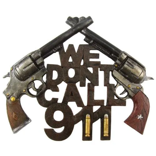 Give burglars and thieves a strong warning with this gun themed home security warning sign. Featuring two pistols, two bullets and “we don’t call 911” text, this security sign is sure to put off any potential intruder. At 9.5 inches long and 11.5 inches wide, this sign is sure to add a touch of light-hearted décor to any house.