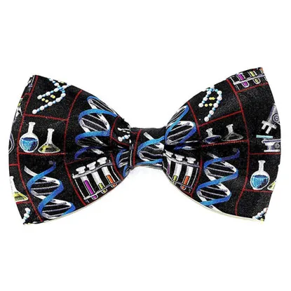 Almost everybody knows a professor who wears a bowtie to their classrooms and lectures. Spice up their bowtie collection with this exceptional DNA themed bowtie. Featuring the colorful pattern of DNA molecules, test tubes and microscopes on top of a black background, this bowtie is sure to turn a few heads.