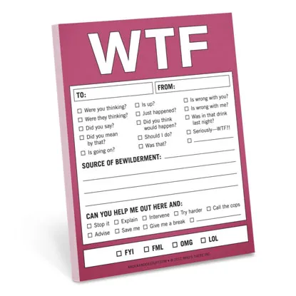 Sometimes, when giving feedback on a piece of coursework or test, it can be hard to find the right words. Help your professor tell it as it is with these humorous WTF page notes. Featuring a range of boxes such as WTF were you thinking? And WTF was in that drink last night? Your professor will have no troubles getting his message across to students with these card clues.