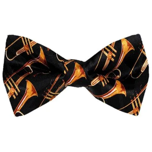 Make them the center of attention with this funny and eye-catching trumpet bow tie. Pre-tied and no need for any difficult tying, this bow tie can be quickly slipped on without any difficulty. Made in the USA from polyester with a satin finish, this bow tie is sure to go well with any formal evening wear.