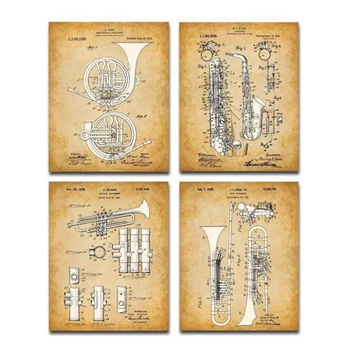 Give them a bit of trumpet history with these excellent and detailed trumpet patent prints. Including four copies of trumpet patents dating back over 100 years, these fascinating drawings are sure to interest any musician. Made in the USA and printed on fuji crystal archive paper, these prints will look great in anyone’s home.