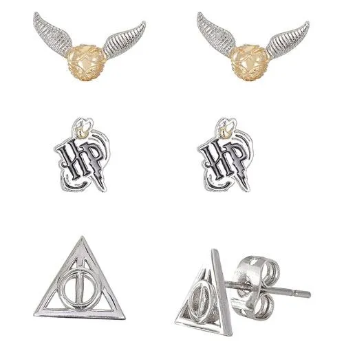 Upgrade their jewelry collection with these must-have earrings. Featuring three different pairs of earrings from the Golden Snitch to the Deathly Hallows emblem, these earrings are suitable for fans of all ages. Made from silver plated brass and officially licensed, any fan is sure to wear these regularly.