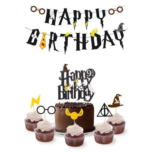 Get the party started with these fantastic Harry Potter themed party decorations. Including a huge Happy Birthday banner in the iconic Harry Potter font, the set also includes a Happy Birthday cake topper and 25 cupcake toppers. Combine them all together, and there are enough decorations to throw a party for even the biggest wizarding fan.