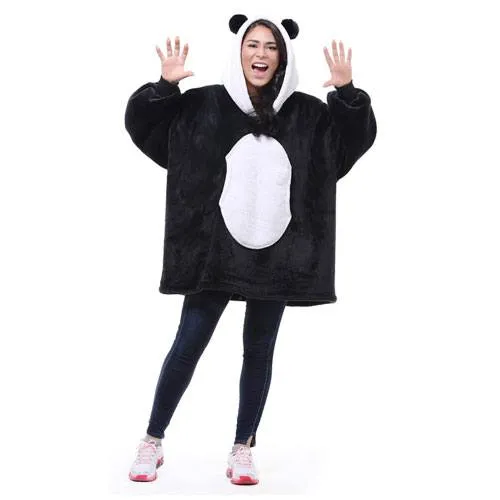 Help them stay warm in the winter months with this super fluffy and comfortable oversized sherpa hoodie. Featuring micro fleece material on the outside and sherpa lining on the inside, this hoodie is suitable for both kids and adults. Including a panda style hood with ears on the top, they’re sure to enjoy wearing this hoodie when it’s cold.
