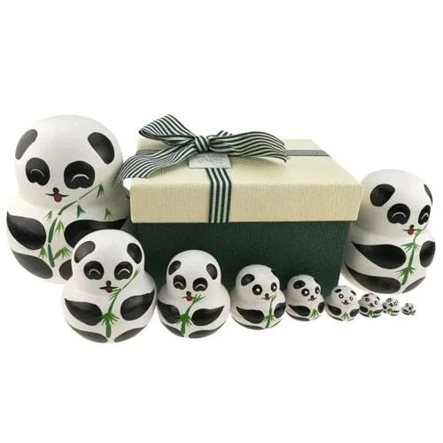 Brighten up their home with these super cute Russian dolls. Made from basswood, these ten panda dolls are beautifully crafted and painted to ensure they are durable. Just like Russian dolls, each one can be placed inside the other for maximum storage. Complete with a presentation gift box, this gift is ready to give to any big panda lover.