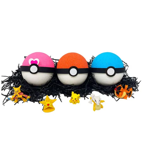 Make bath time more fun with these awesome surprise Pokemon bath bombs. Shaped as pokeballs, each bath bomb contains a Pokemon figurine such as Pikachu, Charizard or Starmie. Made in the USA, these bath bombs are also full of fragrance and color to make bath time even more enjoyable!