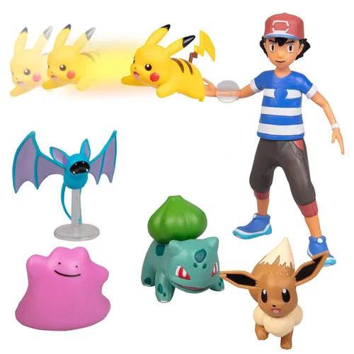 Get them away from the TV and create their own Pokemon battles with this six-piece battle figure set. Featuring the famous Pokemon trainer Ash as well as five Pokemon including Pikachu, Zubat, Eevee, Ditto and Bulbasaur, this set has everything they need to create their own Pokemon battles.